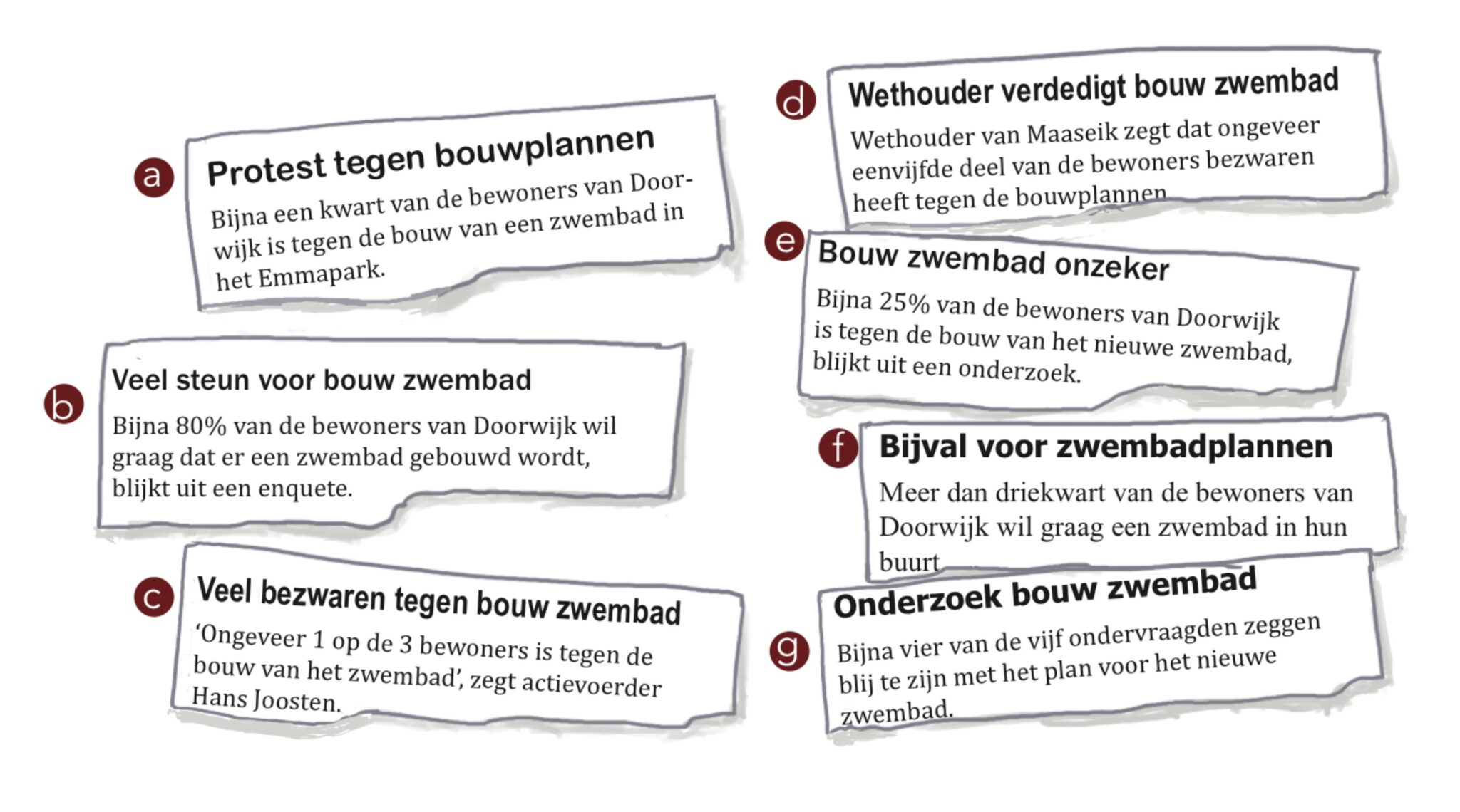 - Lees de fragmenten uit de verschillende krantenartikelen. Welke wiskundige concepten en relaties herken je? Welke perspectieven worden hierin zichtbaar?